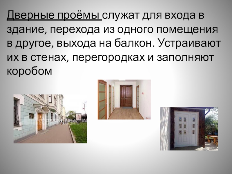 Дверные проёмы служат для входа в здание, перехода из одного помещения