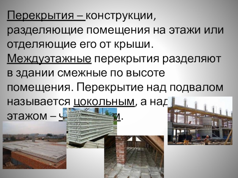 Перекрытия – конструкции, разделяющие помещения на этажи или отделяющие его от