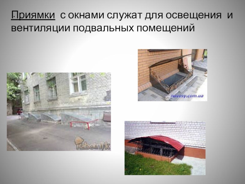 Приямки с окнами служат для освещения и вентиляции подвальных помещений