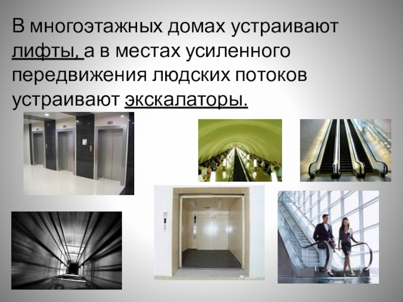 В многоэтажных домах устраивают лифты, а в местах усиленного передвижения людских