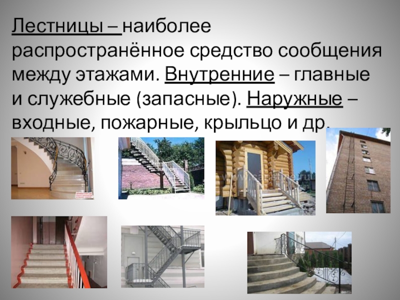 Лестницы – наиболее распространённое средство сообщения между этажами. Внутренние – главные