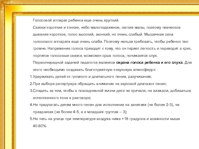 Слайд 10Голосовой аппарат ребенка еще очень хрупкий.