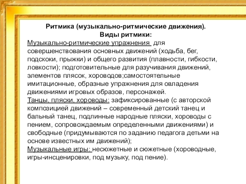 Слайд 13Ритмика (музыкально-ритмические движения).