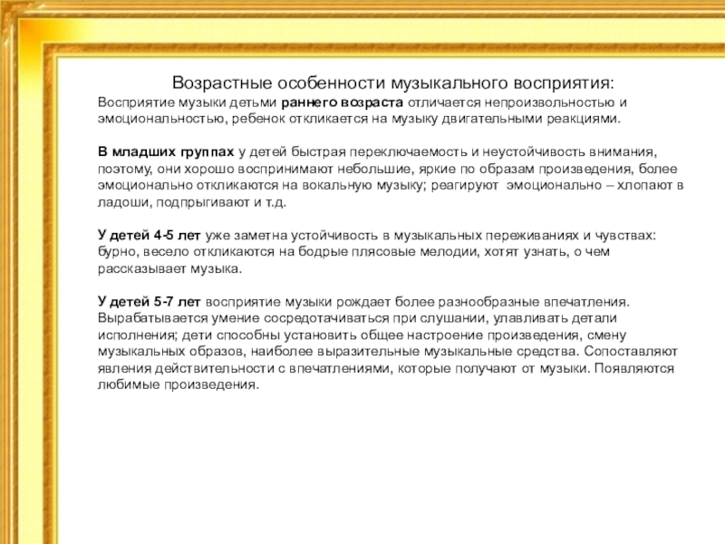 Восприятие музыки детьми раннего возраста отличается непроизвольностью и