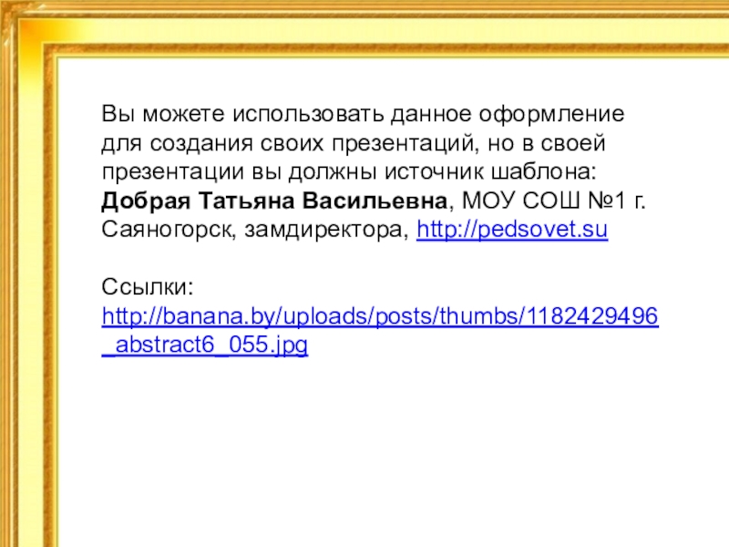 своей презентации вы должны источник шаблона: Добрая Татьяна Васильевна, МОУ СОШ №1 г. Саяногорск, замдиректора, http://pedsovet.su