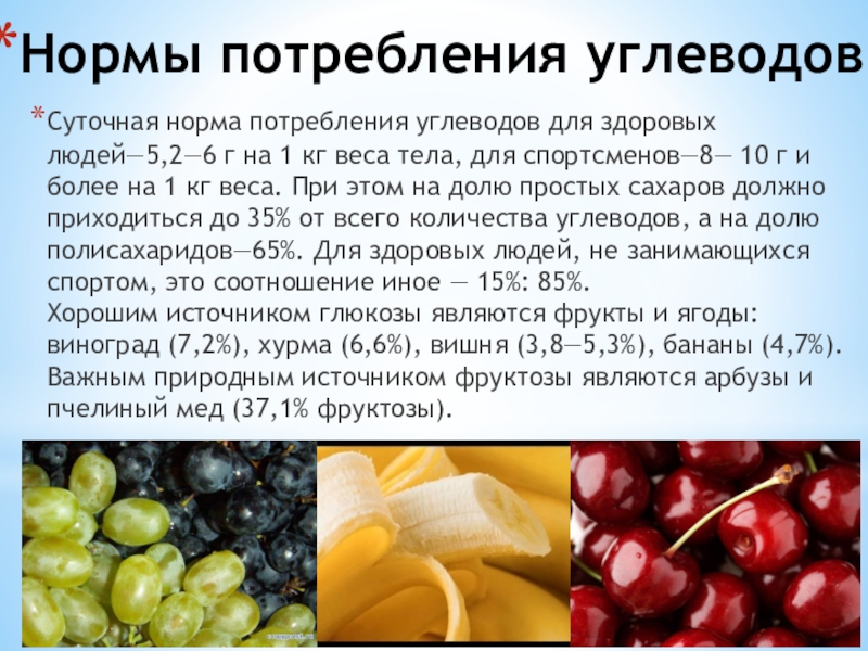 Суточная норма потребления углеводов для здоровых людей—5,2—6 г на