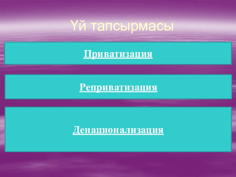Денационализация - әлеуметтік-экономикалық және саяси мағынада - ұлттық, мемлекеттік меншікті жеке меншікке беруді жүзеге асыру процесі;