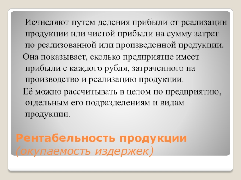 Слайд 7Рентабельность продукции (окупаемость издержек)