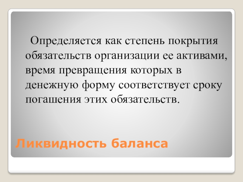 Слайд 15Ликвидность баланса