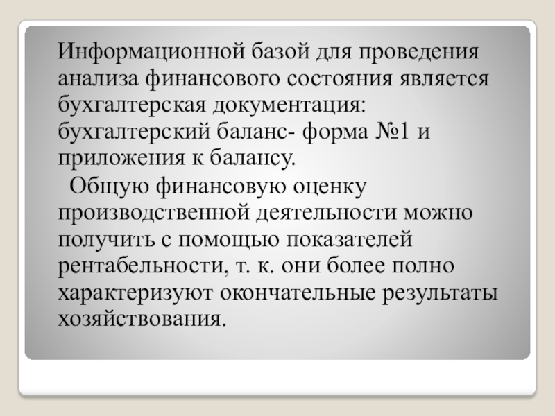 Слайд 5 Информационной базой для проведения анализа финансового состояния является бухгалтерская документация:
