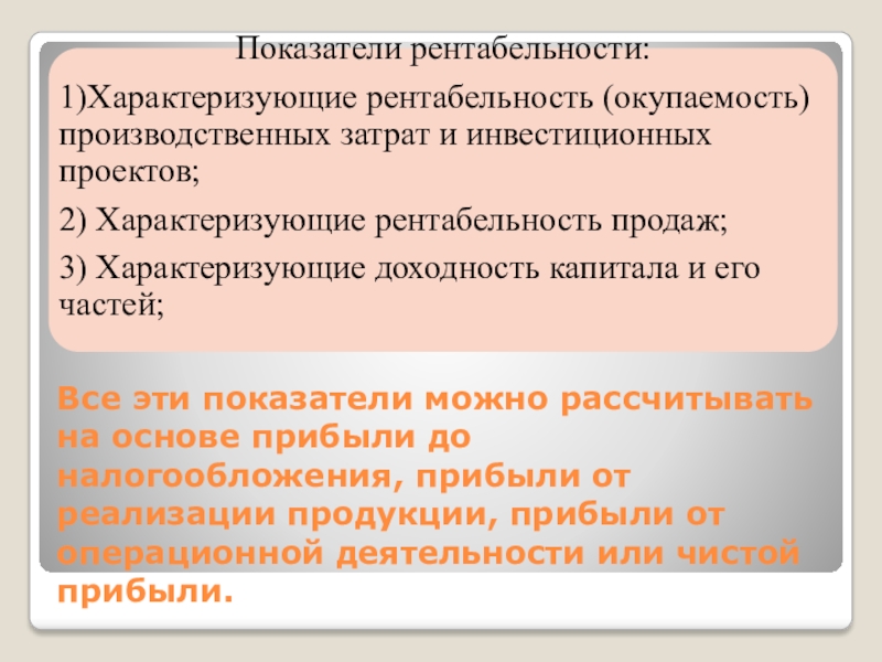 Слайд 6Все эти показатели можно рассчитывать на основе прибыли до налогообложения, прибыли