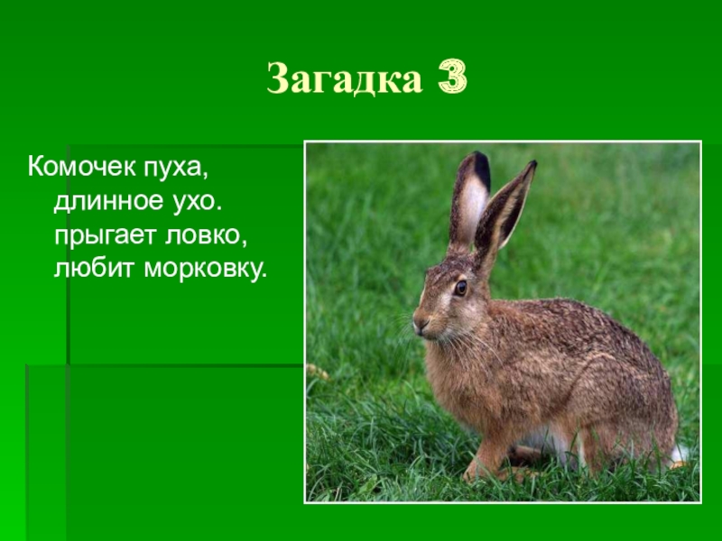 Загадка 3Комочек пуха, длинное ухо. прыгает ловко, любит морковку.