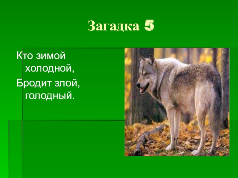 Загадка 5Кто зимой холодной,Бродит злой, голодный.