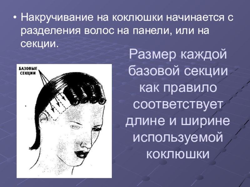 Накручивание на коклюшки начинается с разделения волос на панели, или на секции.