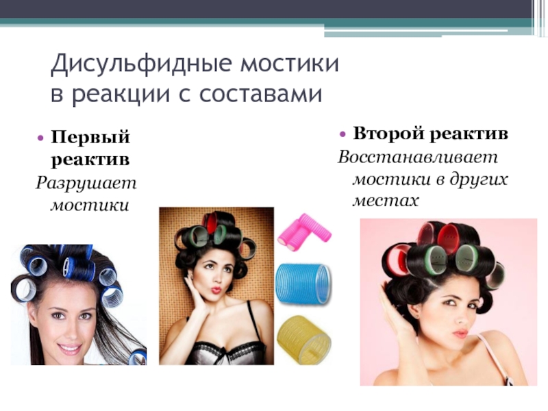 Дисульфидные мостики  в реакции с составамиПервый реактивРазрушает мостикиВторой реактивВосстанавливает мостики в других местах