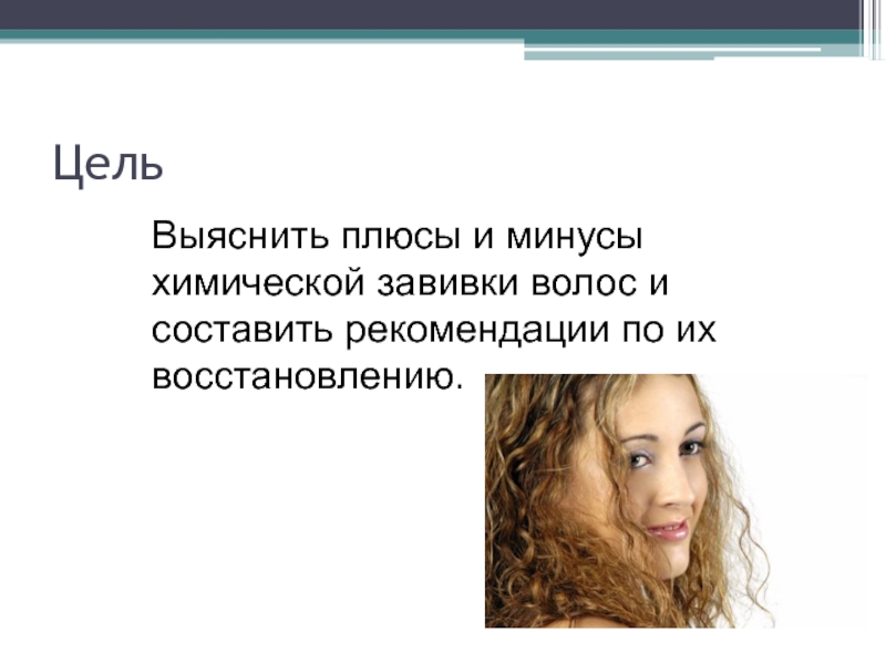 ЦельВыяснить плюсы и минусы химической завивки волос и составить рекомендации по их восстановлению.