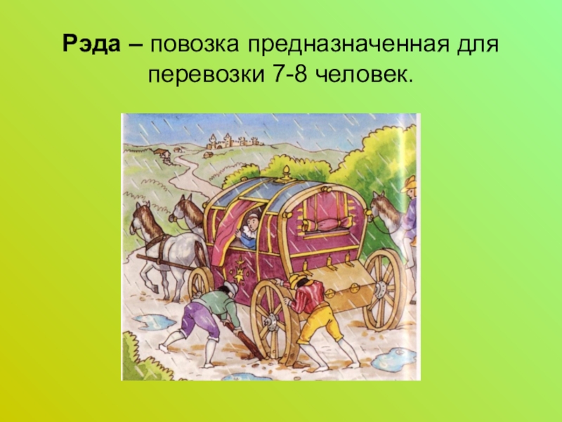 Слайд 11Рэда – повозка предназначенная для перевозки 7-8 человек.
