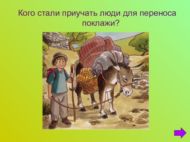 Слайд 31Кого стали приучать люди для переноса поклажи?
