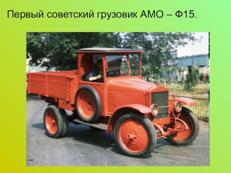 Слайд 28Первый советский грузовик АМО – Ф15.