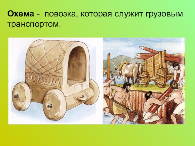 Слайд 9Охема - повозка, которая служит грузовым транспортом.