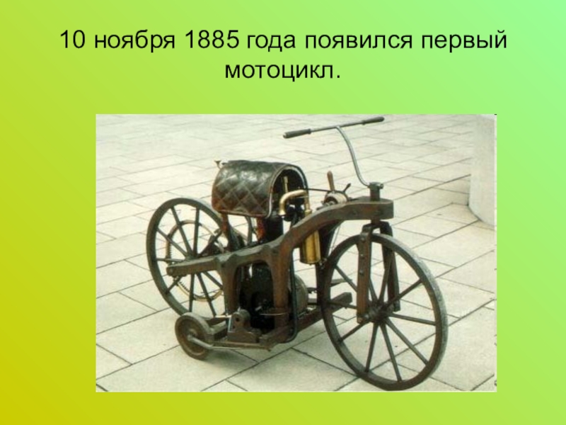 Слайд 2410 ноября 1885 года появился первый мотоцикл.
