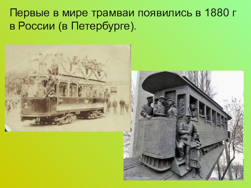 Первые в мире трамваи появились в 1880 г в России (в Петербурге).