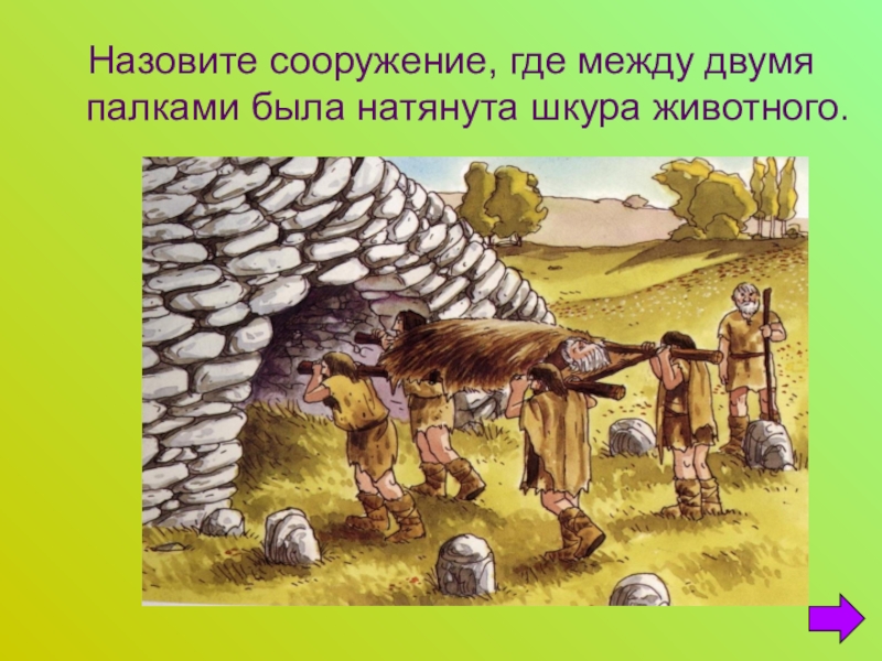 Слайд 30Назовите сооружение, где между двумя палками была натянута шкура животного.