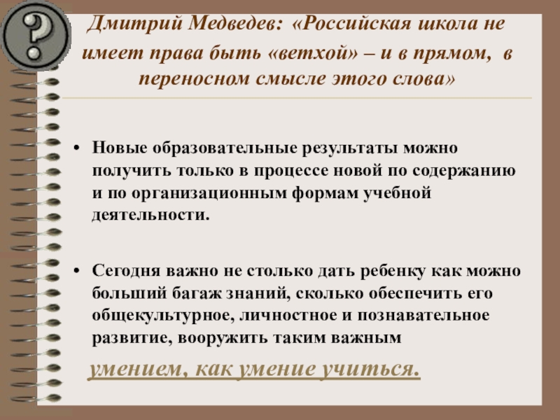 Новые образовательные результаты можно получить только в процессе новой по содержанию и по организационным формам учебной деятельности.