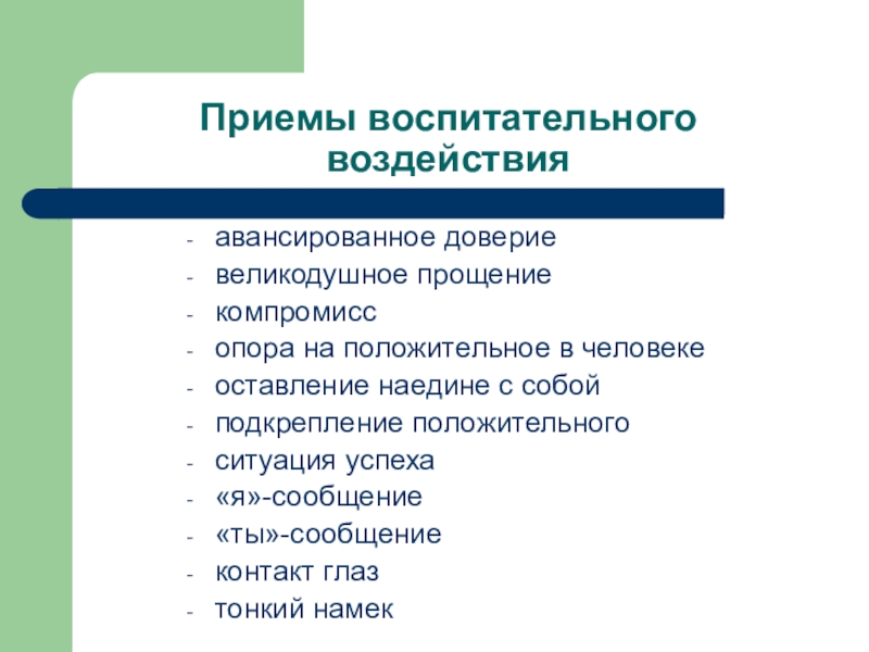 Метод воспитания – это «инструмент» прикосновения к личности.