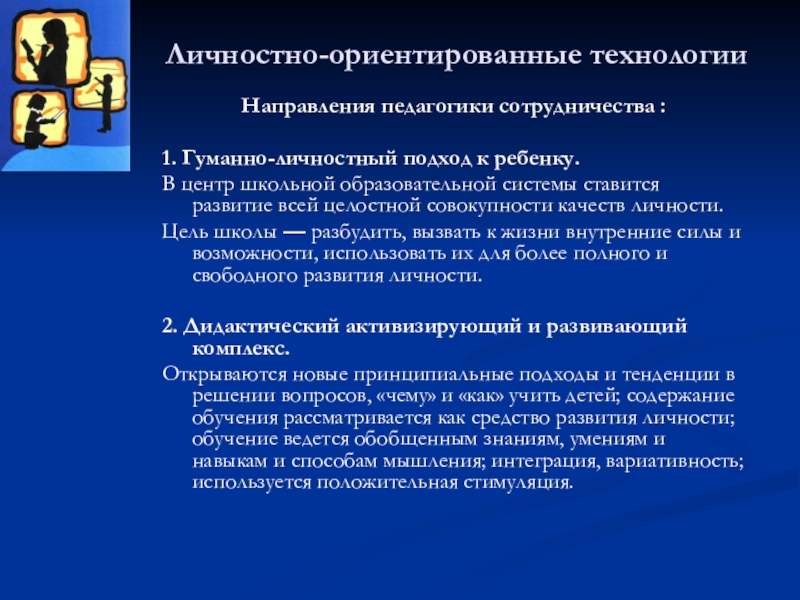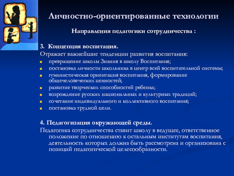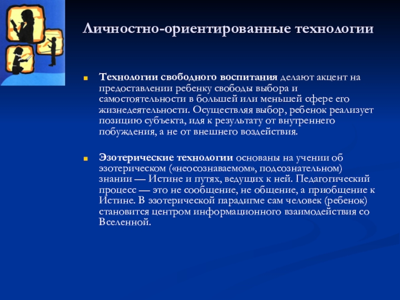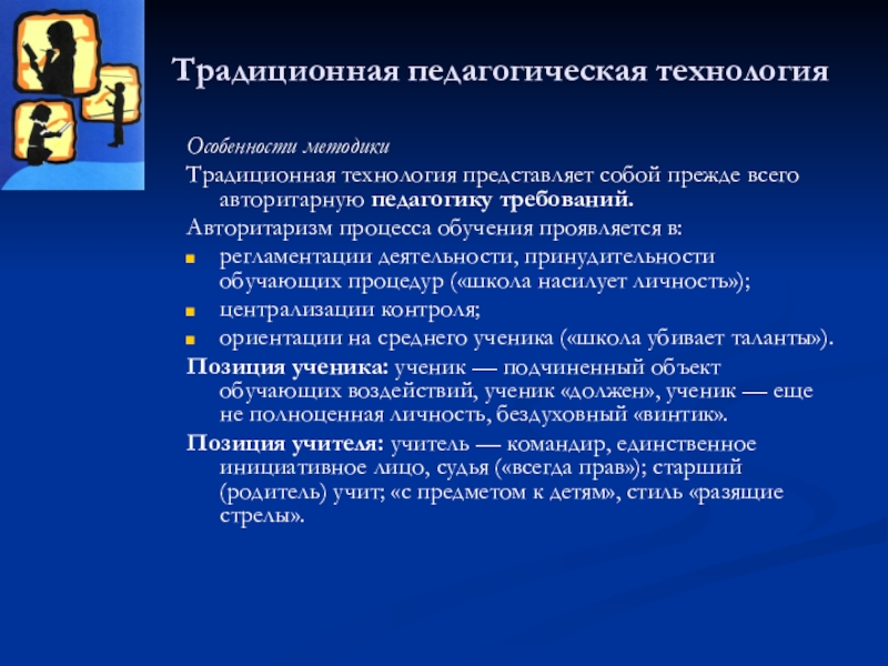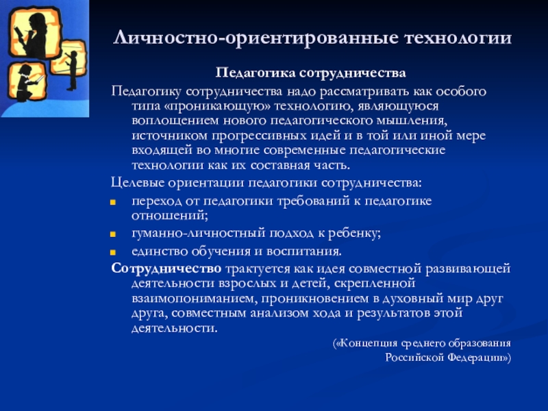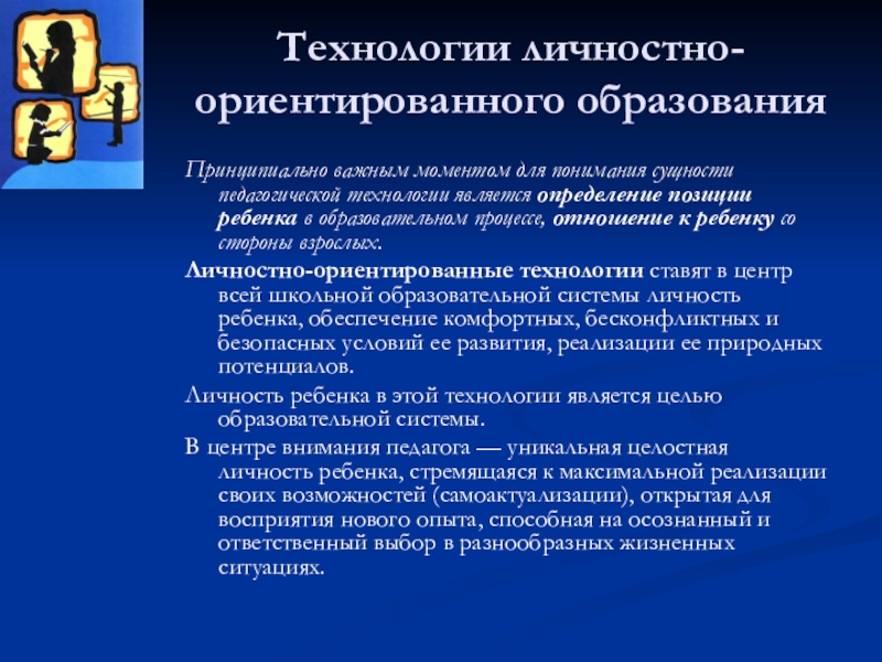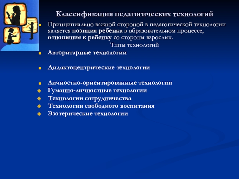 Принципиально важной стороной в педагогической технологии является позиция ребенка