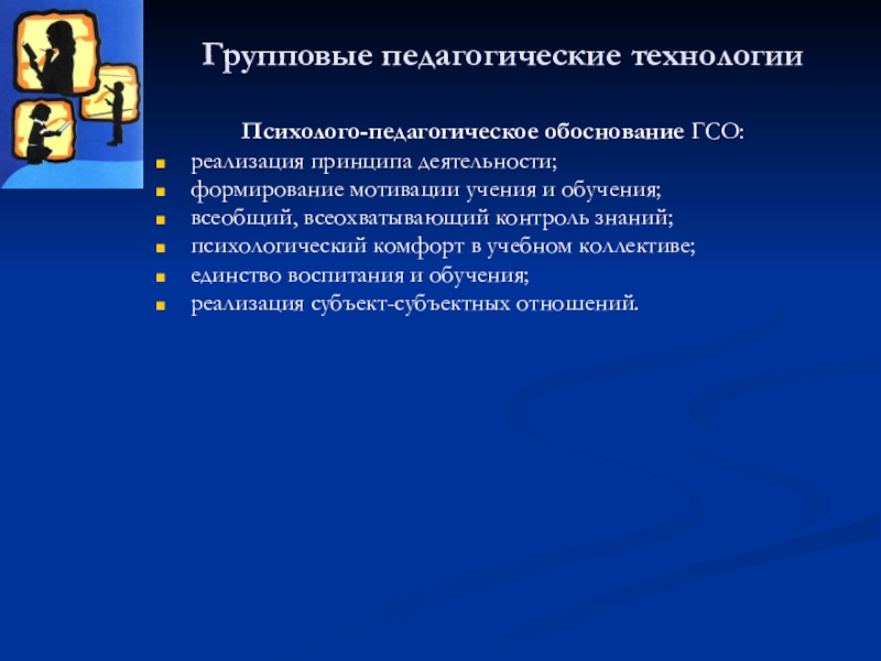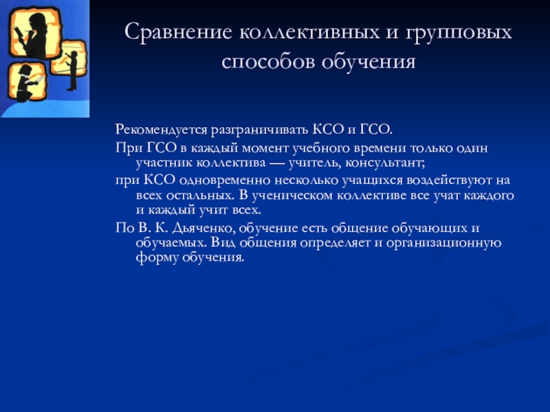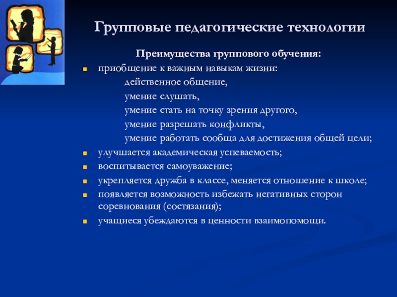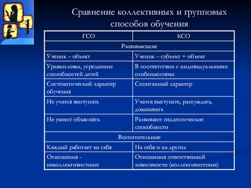 групповые и дифференцированные способы обучения, когда педагог имеет возможность обмениваться информацией со всей группой, а также уделять внимание отдельным учащимся в качестве репетитора;
