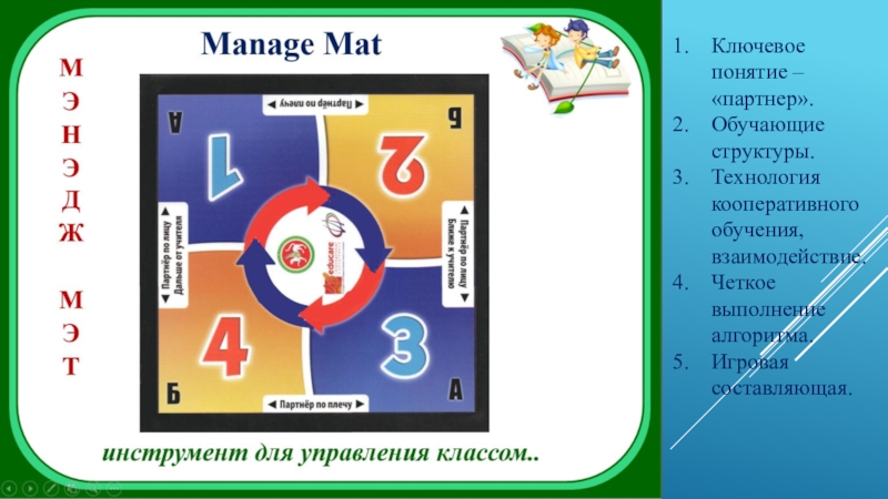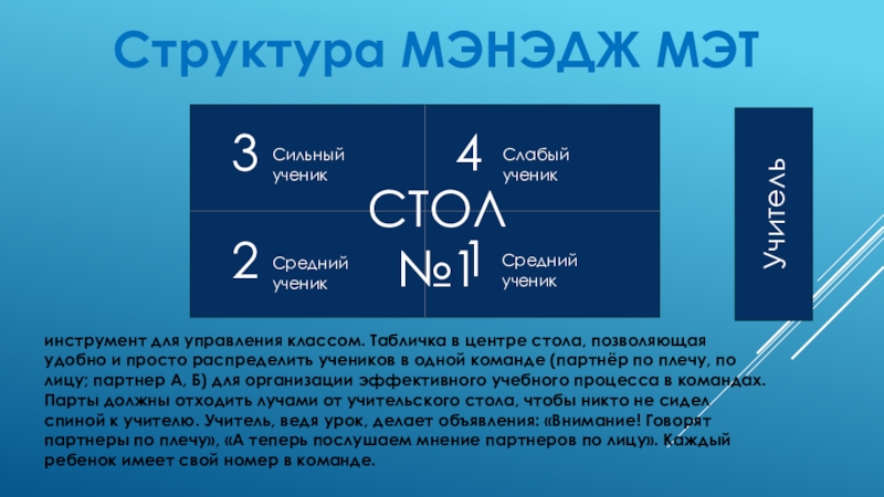 для управления классом. Табличка в центре стола, позволяющая удобно и просто распределить учеников в одной команде (партнёр по плечу, по лицу; партнер А, Б) для организации эффективного учебного процесса в командах.