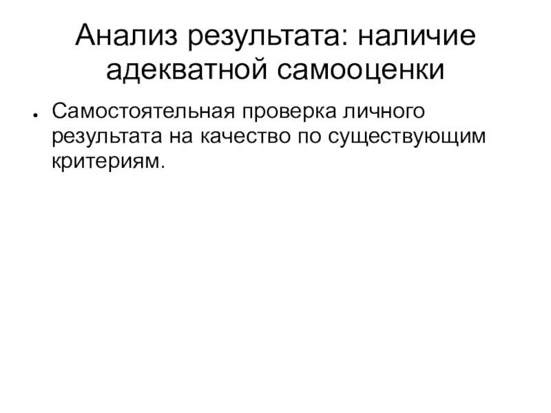 Слайд 30Анализ результата: наличие адекватной самооценки