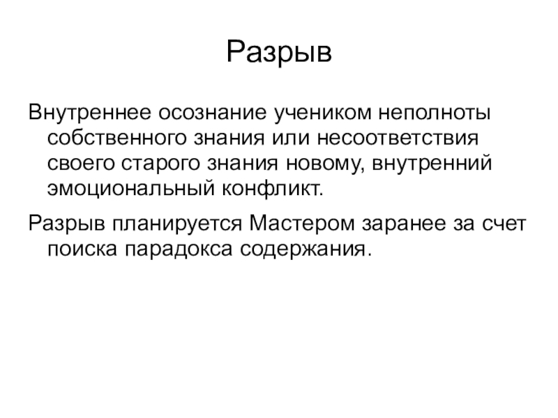 Разрыв планируется Мастером заранее за счет поиска парадокса содержания.