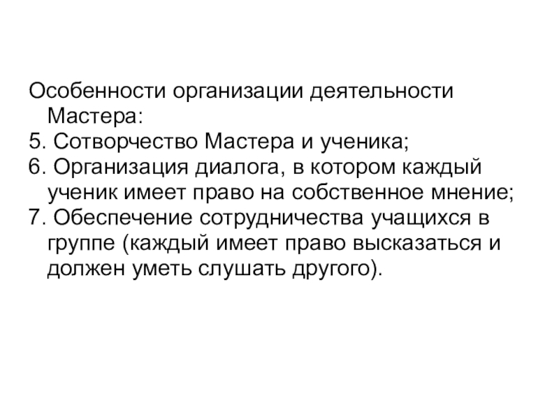 7. Обеспечение сотрудничества учащихся в группе (каждый имеет право высказаться и должен уметь слушать другого).