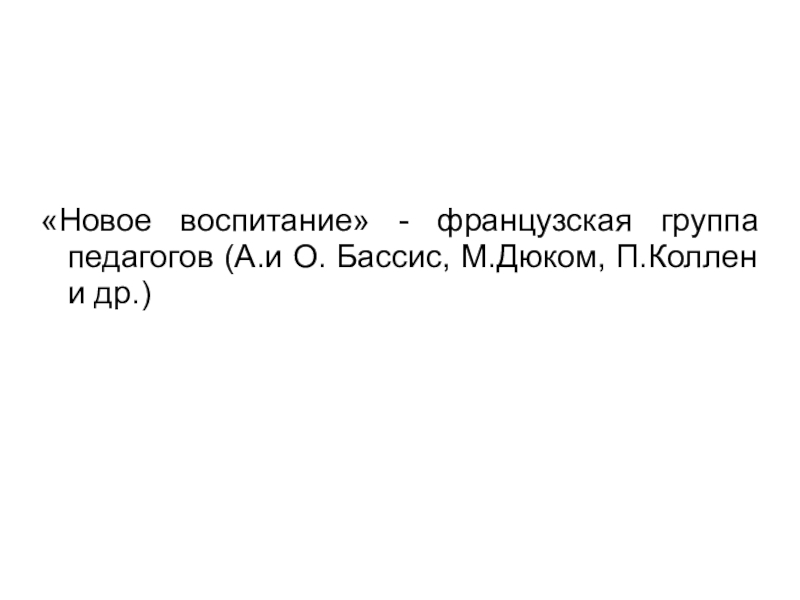 Слайд 3«Новое воспитание» - французская группа педагогов (А.и О. Бассис, М.Дюком, П.Коллен