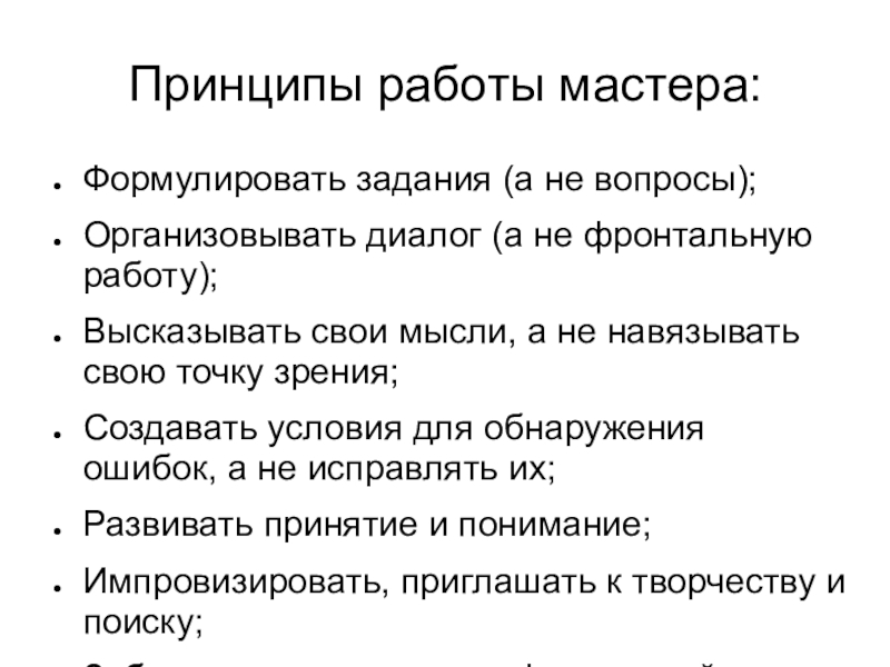 2. Мастер не задает вопросов и сам не торопится отвечать на них.