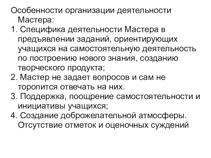 1. Специфика деятельности Мастера в предъявлении заданий, ориентирующих