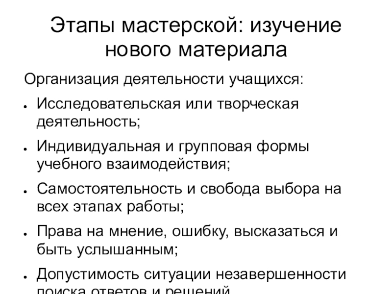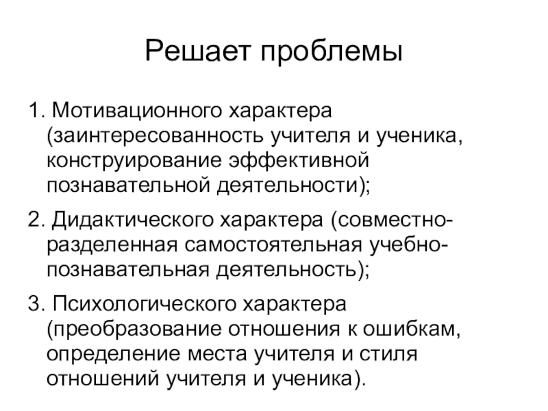 3. Психологического характера (преобразование отношения к ошибкам, определение места учителя и стиля отношений учителя и ученика).