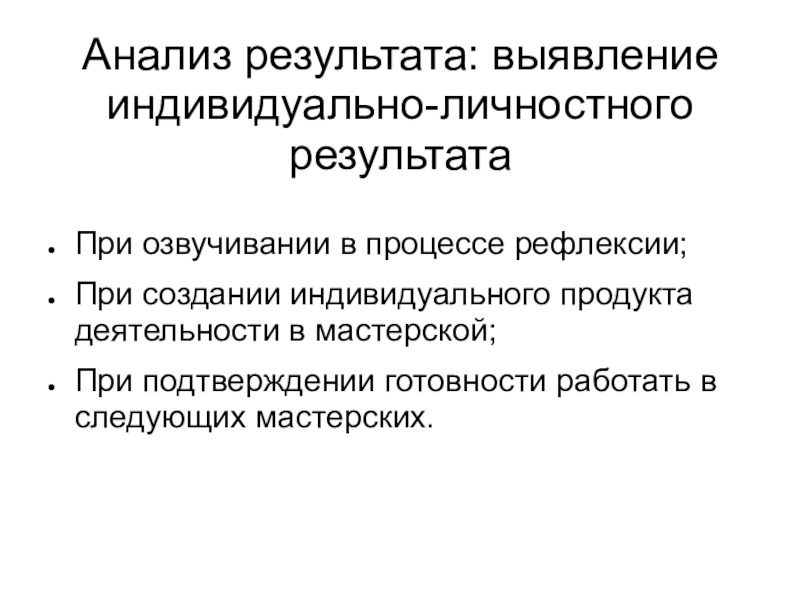 Слайд 29Анализ результата: выявление индивидуально-личностного результата