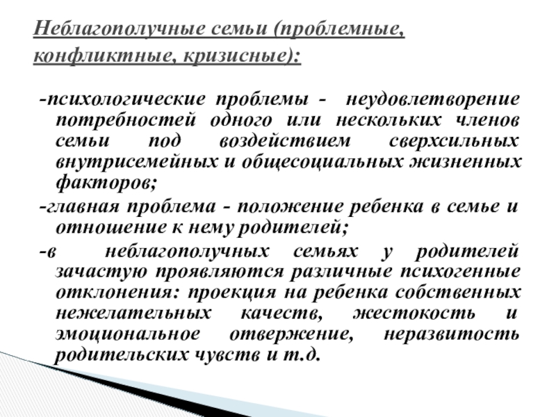 Неблагополучные семьи (проблемные, конфликтные, кризисные):