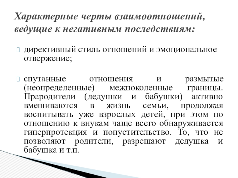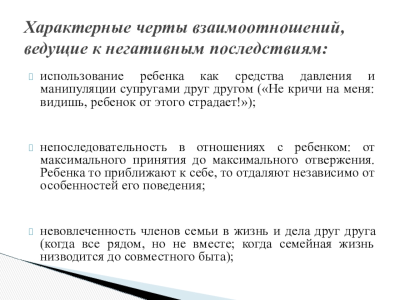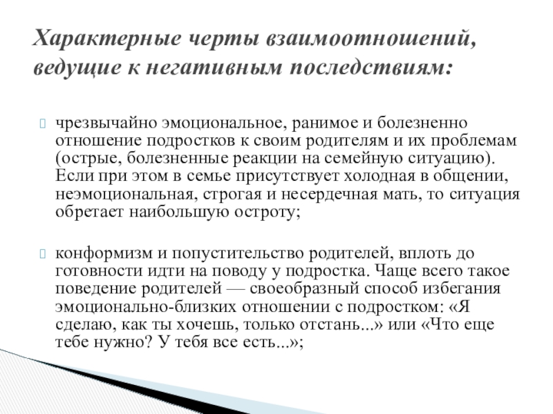 Характерные черты взаимоотношений, ведущие к негативным последствиям:
