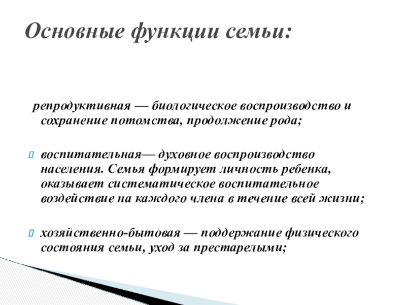 Основные функции семьи: