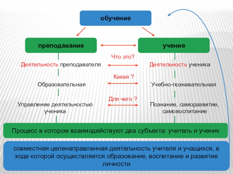Процесс в котором взаимодействуют два субъекта: учитель и ученик