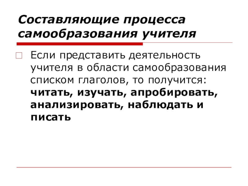 глаголов, то получится: читать, изучать, апробировать, анализировать, наблюдать и писать