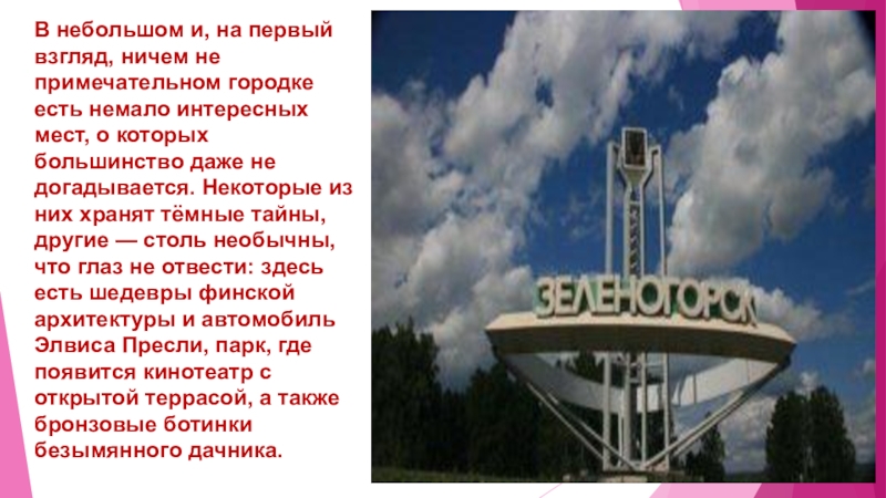 Слайд 111 непопулярных мест Зеленогорска, которые рекомендуется посетить
