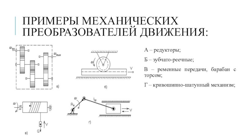 Слайд 3Примеры механических преобразователей движения: