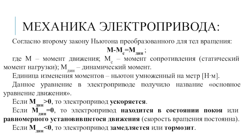 Данное уравнение в электроприводе получило название «основное уравнение движения».