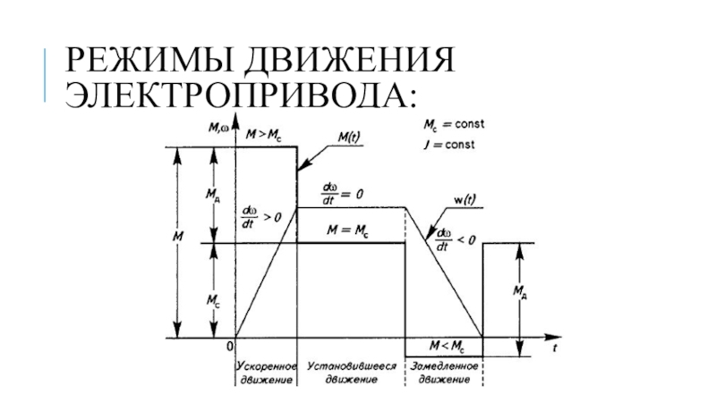 Слайд 6Режимы движения электропривода: