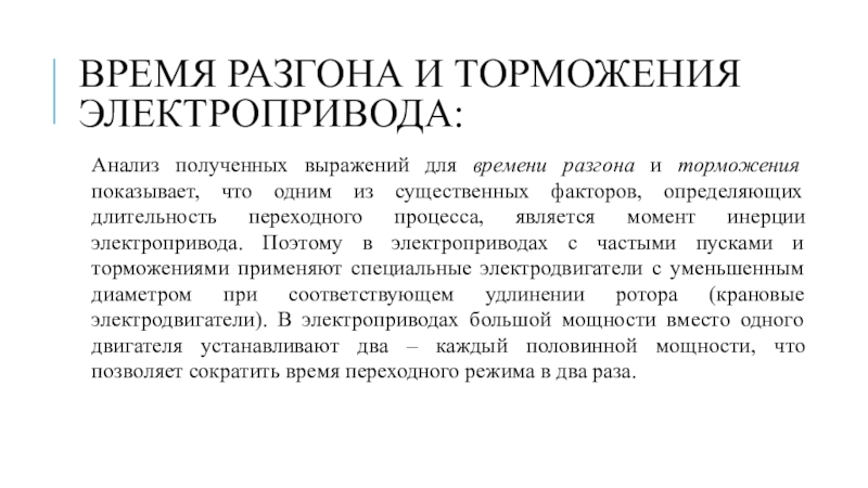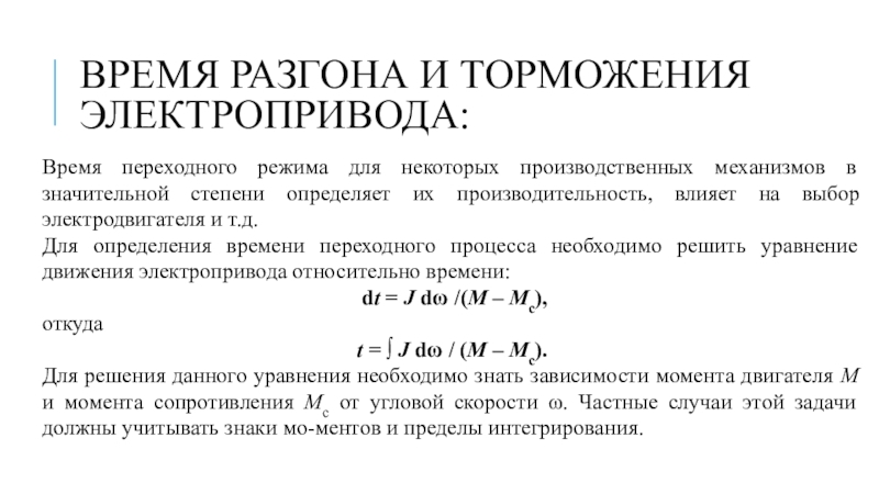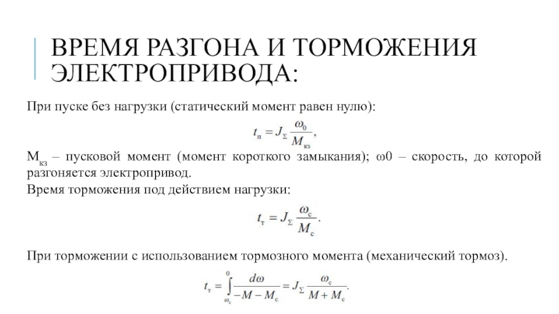 Слайд 13Время разгона и торможения электропривода:
